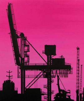 杰纳斯・艾尔芬索的作品焦点主题是市景中的起重机和桥,他将工业融入自然。他的起重机既不是干扰,也没有破坏市容,相反地,艺术家不仅呈现出一个理想世界,并将21世纪人类与自然之间因工业引起的变化具象化。不可思议的是他的作品是如此的细腻与优雅,图中巨大的起重机和集装箱桥是如此的轻盈。你感受不到沉重的工作、闻不到尘土、也听不见噪音,艾尔芬索将它们与有天堂氛围的自然现象连结起来,如冉冉昇起的朝阳、天空变幻的光芒或是暮光的色彩,并从中发现工业设备之美。