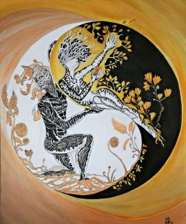 由此,她画中的每个线条、每个曲面和每个颜色都是追求和谐自然平衡的一部分。画家对历史和自然的热情是她创作灵感的主要来源。她希望可以通过自己寓言性的图像语言来强调人与自然之间重要的联系。