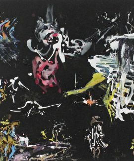 Watercolor, Coal, Chalk, Coffee, Berry Juice, Acrylic on Black Carton, 78 x 59 cm, 2017