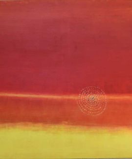 Dorette Polnauer works mainly on topics of color-symbolic perception of the outside world. Three motifs are woven into the painterly language of the artist, namely the spiral, the outfit as well as the framing and the red color. On her study trips to Malta, Africa and Australia, Polnauer explores the symbolic meaning of the spiral motif. She uses inherent energy of this symbol, rooted in the life-giving form of the germs in the plant world, to express the primitive life force. The motif "dress and framing" symbolizes the social behavior of the people, i.d., how the cultural people cover themselves and identify themselves. The red color has been associated with the meaning of life and power, love and eroticism in the collective memory of the Westerners. The artist connects it as an element carrying emotions with the other two morphological motifs. For her paintings, Polnauer prefers the "pure color", which she makes from pigments herself and mixes further with ash and sand.