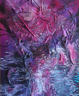 Oil, spray paint, crepe paper, 150x100 cm, 2016