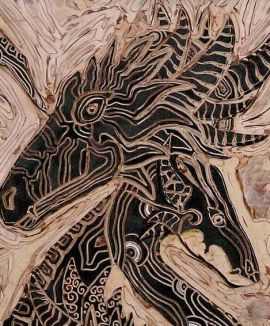 Der Künstler Daniel Täumel ist malender Musiker und musizierender Maler. Wobei seine Bilder zugleich Bildhauerarbeiten sind. Bei der Malerei, wie bei der Musik beschreitet er eigene Wege. Seine Arbeiten vereinen surreale Anklänge, kubistische Elemente, Assoziationen zu prähistorischer Kunst und den Traumpfaden der Aborigines- eine Art interkulturelle Schöpfung. Jedes seiner Werke ist ein Ritual, das die Zeit verlangsamt und um Erkenntnis bittet. Vielschichtig werden Geschichten erzählt, deren Offenbarung nicht mit dem Hammer geschieht. Seine Themen sind: Evolution, der Untergang der Hochkultur, die Wahrheit der Wirklichkeit und wie sollten wir einander begegnen.