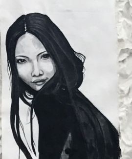 She is fascinated by simplicity in our complicated world. To understand people, situations and why we are as we are or do as we do have driven her since childhood. A driven feeling for understanding, for seeing what is behind. At work, she always wants to communicate a feeling or a bit of the souls of her motifs, rather than just painting an aesthetic face. The eyes, the hands or the body language in her pictures play their parts. The balance/unbalance between black and white does play a part. She likes the challenge it gives her to express the message only in black and white. Black and white make the duality, stillness and chaos, light and dark. She finds inspiration in the Asian philosophy and thinks that the wheat culture has a lot to learn from the rice culture when it comes to focus on inner peace and its value.