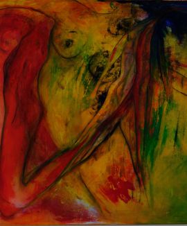 Her art consists partly of drawings with oil pastels or charcoal pencils, partly of large-format or small acrylic paintings on canvas. They are "soul images", expressionistically oriented and held in the tones red-yellow-orange. In her works appear always some beings, tender or powerful, but always they are afflicted with her feelings for the present situation. Between the seamless brushwork floating figures appear. You can see female breasts and yet they are not nude, you see hands and faces and yet they are not men. While enthusiastic about nature, the artist does not intend only to reproduce nature. For her, the purpose of art is to awaken feelings and promote aesthetic awareness.